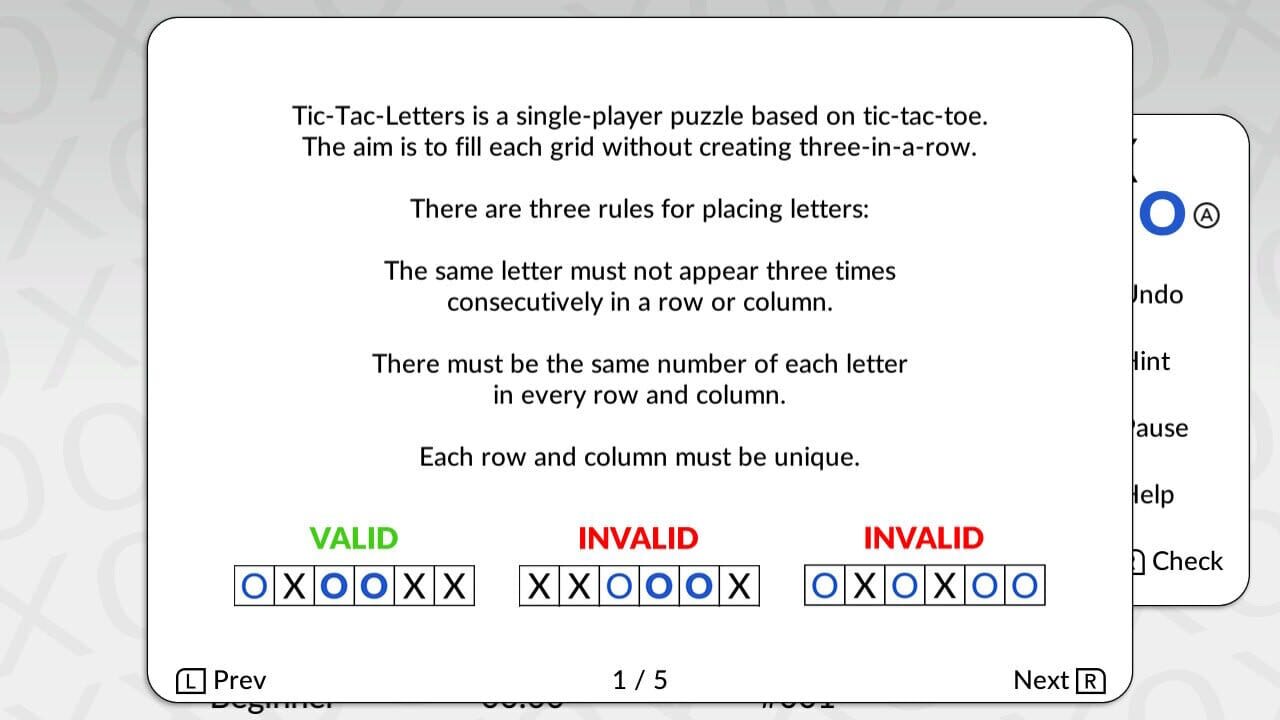 Tic-Tac-Letters is a single player logic puzzle based on tic-tac-toe.