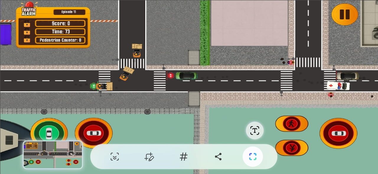 Traffic Alarm is a mobile traffic management game where players control traffic lights to guide vehicles safely and efficiently through busy intersections. The goal is to prevent accidents while maximizing traffic flow within a limited time. Featurin...