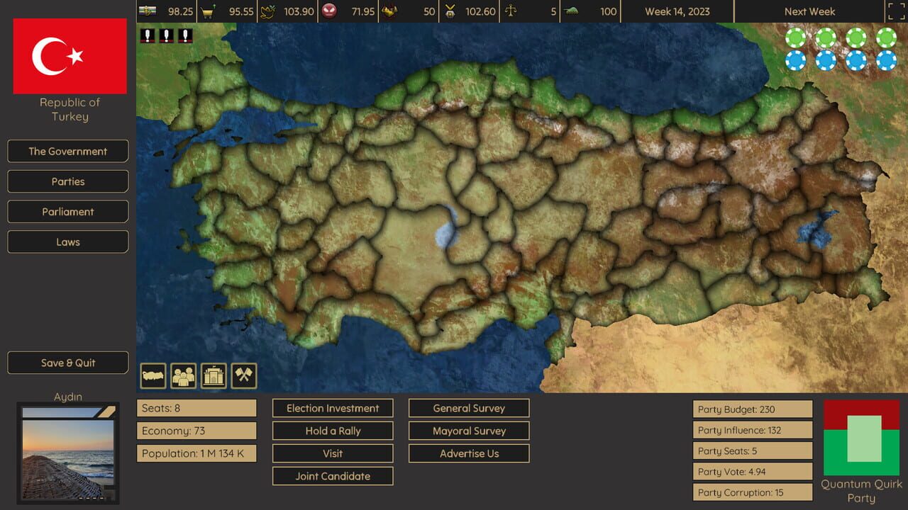 Lead your political party in a fierce competition to seize power against major rivals. Invest strategically, secure votes, and navigate crucial decisions to claim the presidential seat. Will you shape the destiny of Turkish politics?