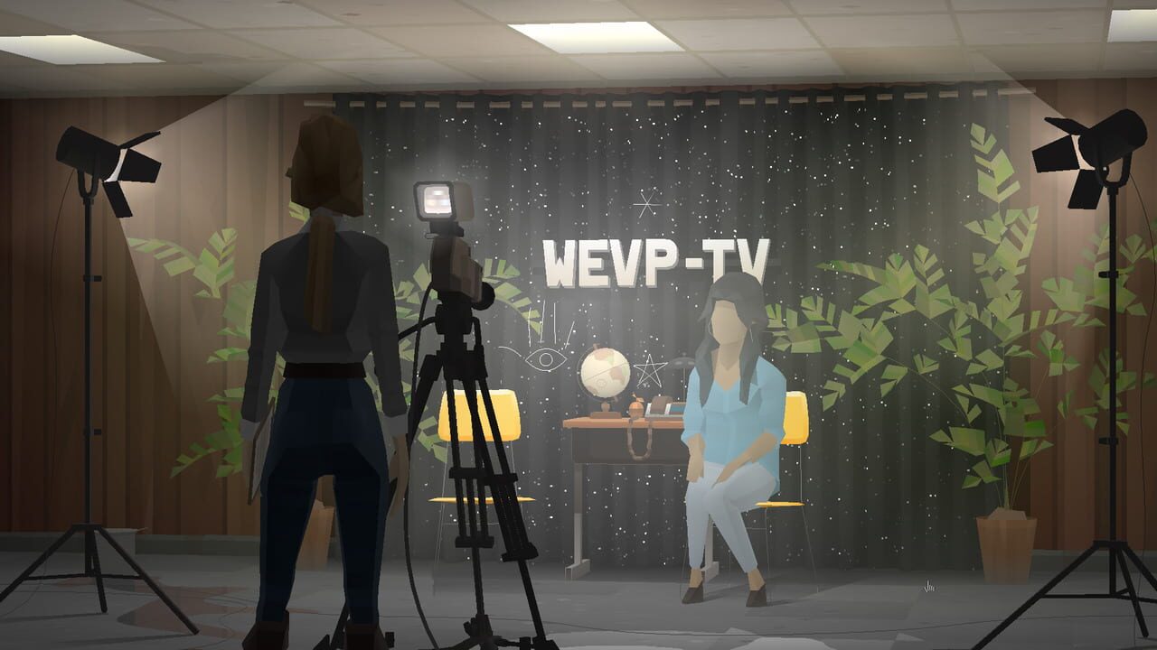 Kentucky Route Zero's fourth interlude, in which Emily, Ben and Bob take part in the production of the evening broadcast at public-access station WEVP-TV. It's raining.