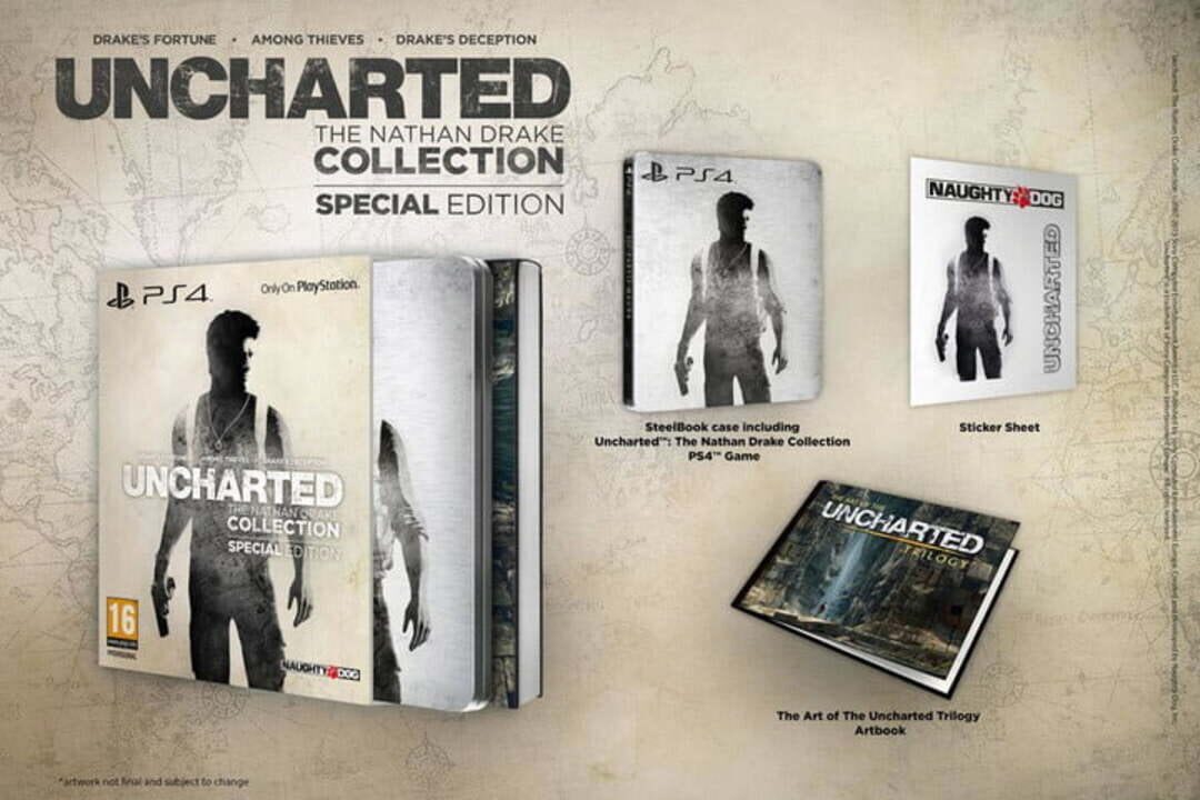 This Special Edition contains: - Uncharted: The Nathan Drake Collection - Steelbook case - Artbook (48 pages) - Sticker Sheet