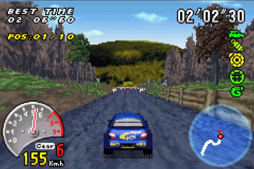 V-Rally 3 for the Game Boy Advance adapts the console game of the same name to the handheld platform, offering its own selection of cars, tracks, modes and a platform-appropriate graphics engine.