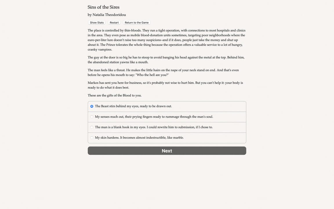 In this elegy of blood, everyone in Athens owes your boss a favor, making you untouchable! Who will you use, who will you help, and who will you prey on? Vampire: The Masquerade - Sins of the Sires is an interactive novel by Natalia Theodoridou. It'...