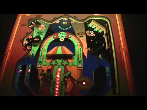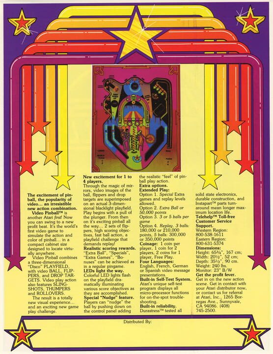 It's the world's first video game to simulate the action and color of pinball... in a compact cabinet size. Through the magic of mirrors, video images of the ball, flippers and drop targets are superimposed on an actual 3-dimensional blacklight play...