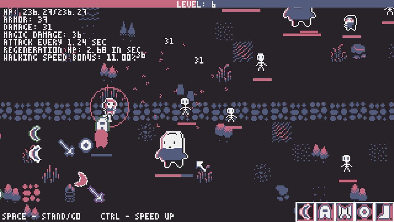 Go forward. Kill enemies. Collect loot. Get stronger. And again. An unusual mix of genres will allow you to focus solely on the choice of equipment and upgrades.