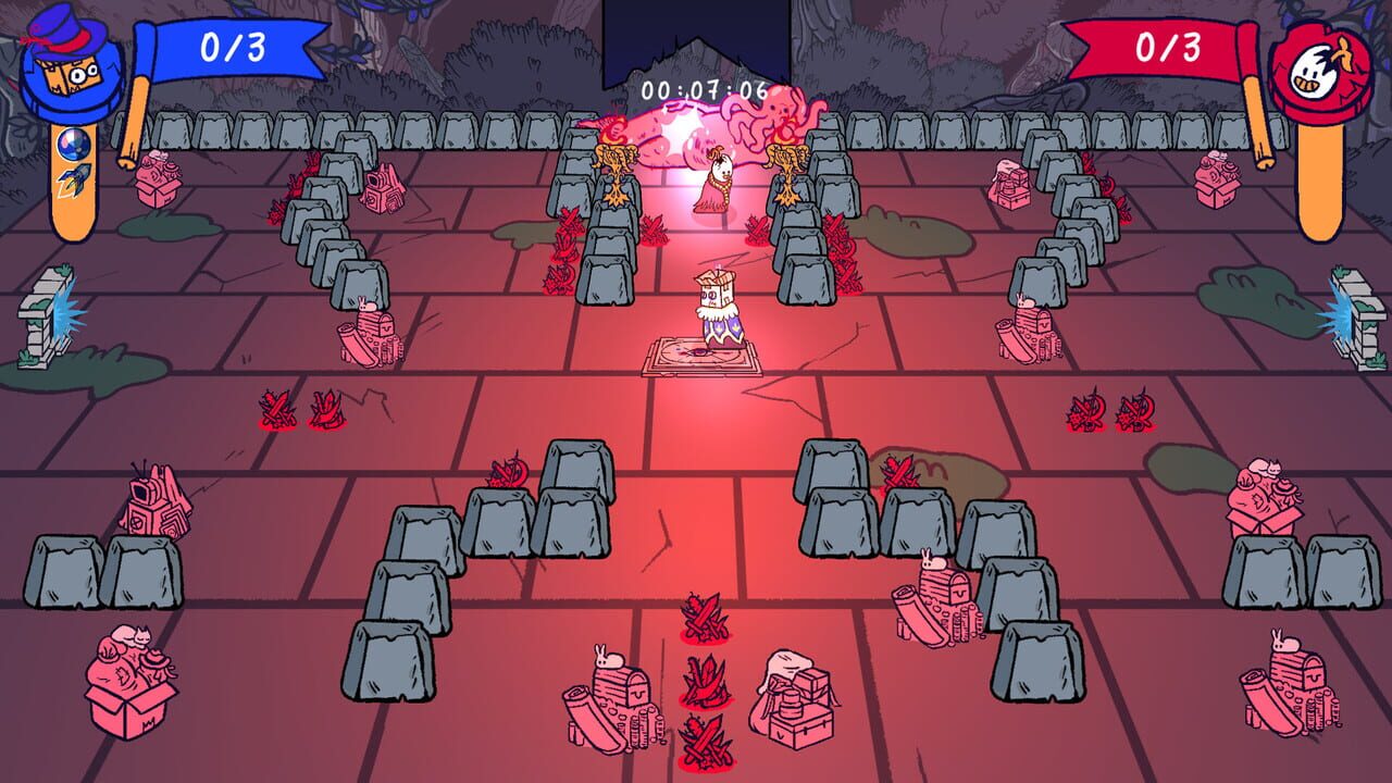 Help the forgetful deity find its hat among its sacred relics! Push, kick, search for artifacts, and flee from the god’s whims. In this absurd chaos, the one who best controls their emotions wins. Test yourself and your friend!