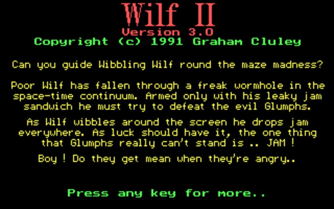 Poor Wilf has fallen through a freak wormhole in the space-time continuum. Armed only with his leaky jam sandwich he must try of defeat the evil G...