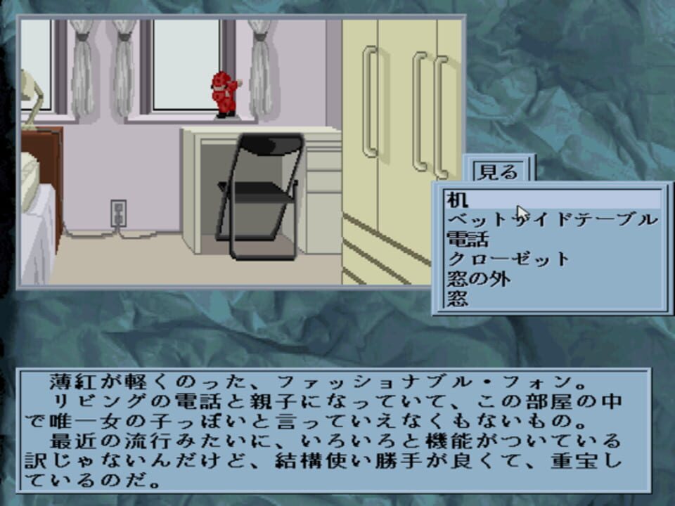The sixth installment in System Sacom's Novel Ware series, Yami no Ketsuzoku is a Japanese-style adventure game. The player interacts with the environment by selecting objects to look at, conversation topics, and locations to travel to from a menu. T...