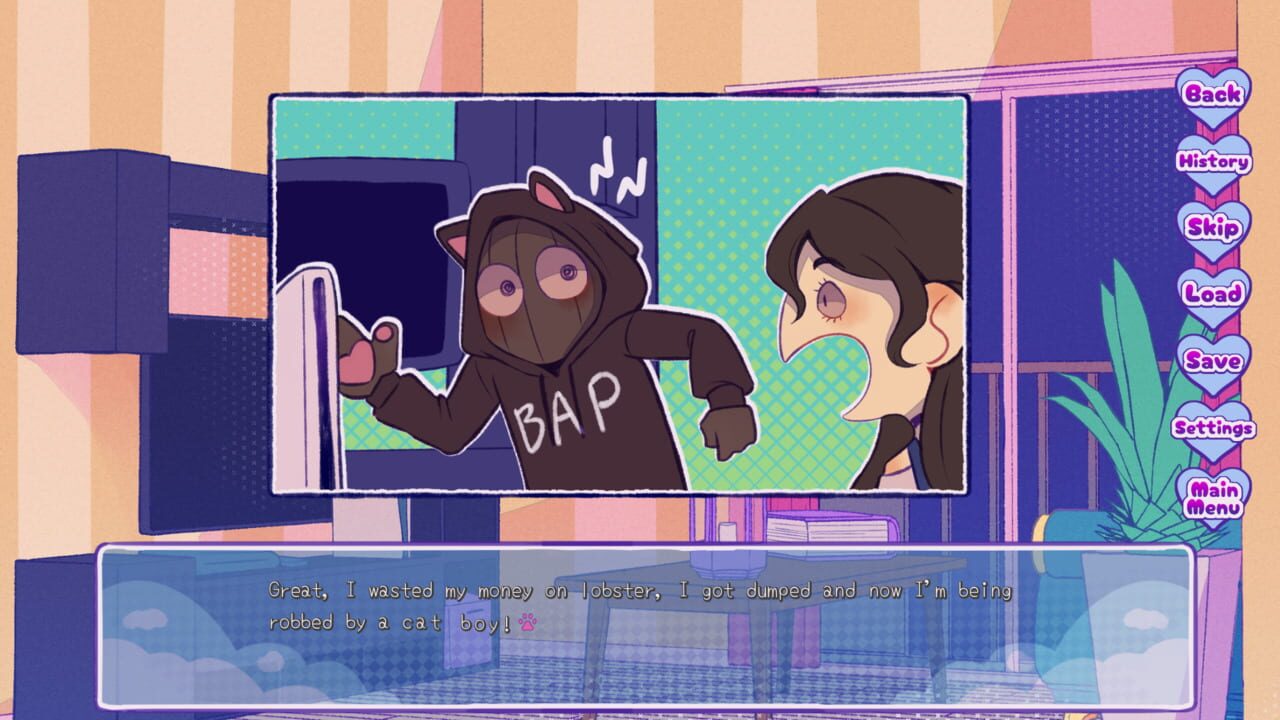 An indie freeware visual novel with the goal of romancing the thief that broke into the protagonist's house. Includes multiple choices that can lead to one of seven endings depending on the player's choices.