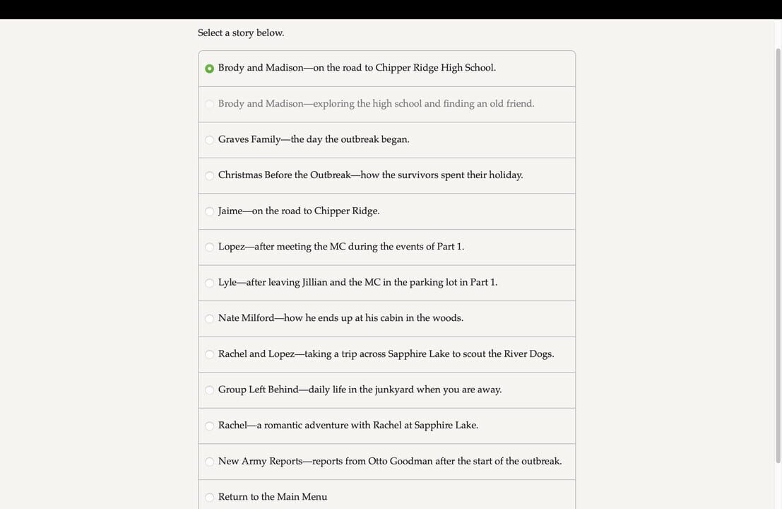 Stories from the Outbreak, set 2 chronicles events of key characters at various points throughout Zombie Exodus: Safe Haven. These ten stories are noninteractive but focus on characters in the game and provide their backstories and events as they str...