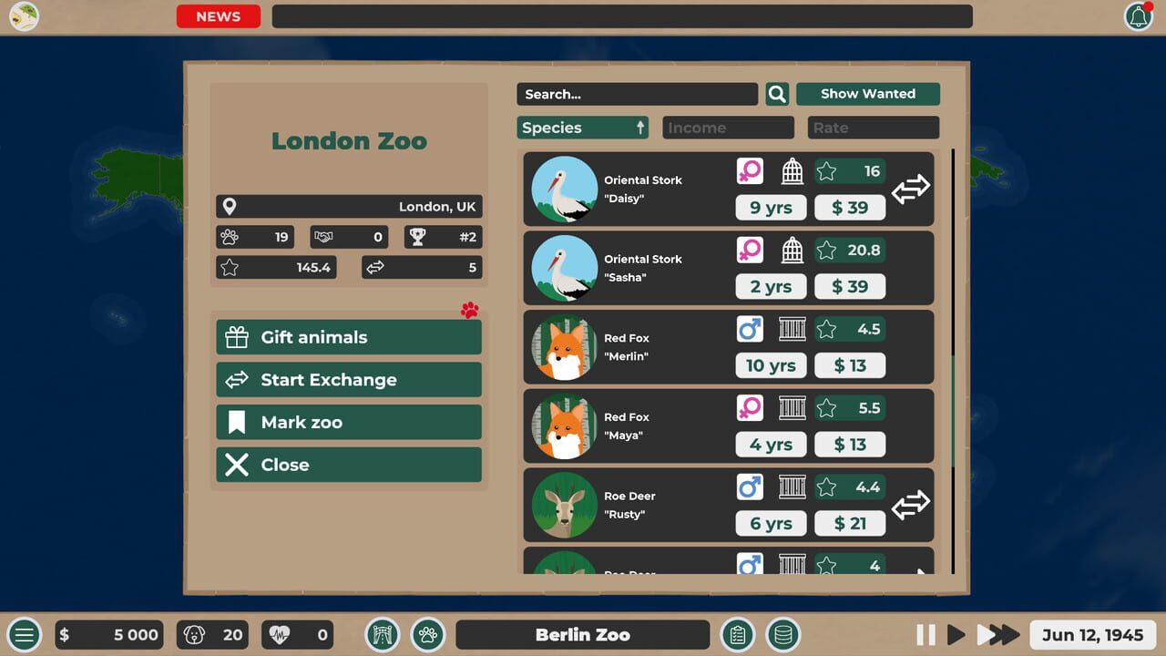 Have you ever wondered how zoos get their animals? It's simple - via exchange. You need a Koala while the London Zoo needs a Brown Bear. What a coincidence you have a Brown Bear and the London Zoo has...