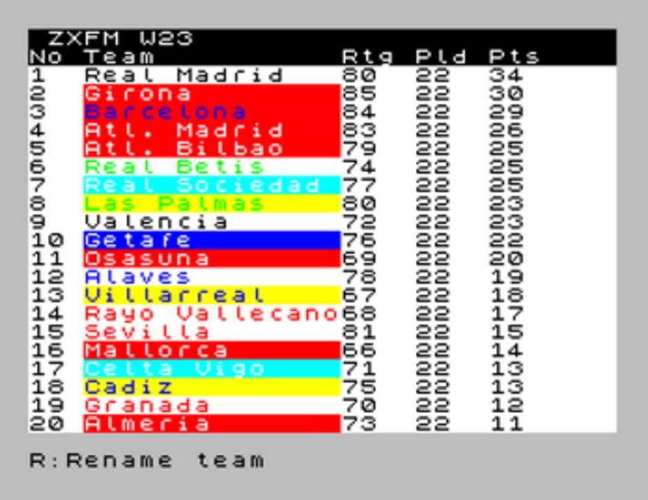 ZXFM is a football management simulator for the Sinclair ZX Spectrum written in just 10 lines of BASIC! Play an entire season as manager of a team from your favourite league, or create your own leagues and teams. Manage injuries, buy and sell in the ...